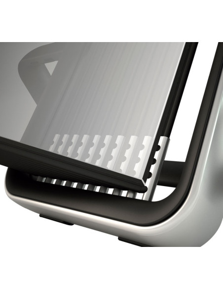 VEO displays, protege y organiza sus documentos importantes. VEO te facilita el tiempo, genera menos estrés y mayor eficiencia en el día a día. Una combinación de diseño y materiales de alta calidad. VEO se puede utilizar para cualquier tipo de información en papel que quiera ser resaltada. Increíblemente fácil de montar: solo con un clic, sin herramientas. Base en aleación de aluminio en acabado negro con acabado suave. Excelente estabilidad. Incluye 10 fundas con pivotes en polipropileno. Pivotes de acero. Posibilidad de ampliarlo de 10 a 20 fundas añadiendo una unidad de pared. Las unidades de sobremesa pueden ser infinitamente extendidas, sólo tienes que añadir otra unidad de mesa y otra de pared al lado, así progresivamente.