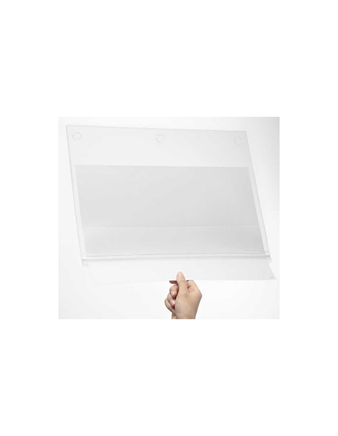 Fundas impermeables, ideales para mostrar información en exteriores, como centros de jardinería, saunas, piscinas, puertas y tablones de anuncios, donde acostumbra a haber salpicaduras de agua. El cierre hermético a presión protege el contenido de la funda, especialmente de la lluvia, humedad y polvo. Autoadhesivas: se fijan con las 6 almohadillas autoadhesivas extraíbles incluidas. Protección IPX5 (contra chorros de agua de cualquier dirección). Plástico transparente con estabilización UV, resistente a la intemperie y a los arañazos, con tratamiento antirreflectante. Se puede usar en horizontal y en vertical. Fácil y rápido intercambio de contenido. Capacidad: 2 hojas 160 g/m2. Formato A3.