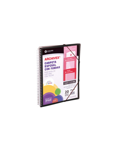 CARCHIVO ARCHIVEX-STAR CANGURO PERSONALIZABLE A4 CON 20 FUNDAS PP ESPIRAL NEGRO