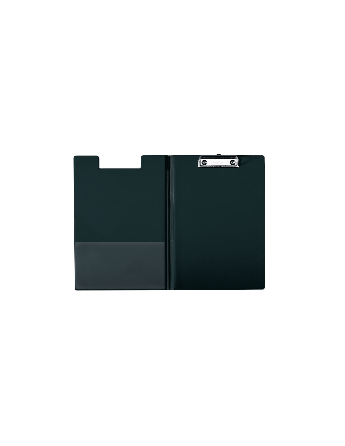 Carpeta de congresos fabricada en PVC rígido para escribir de pie en desplazamientos. Resistente pinza de metal superior. Capacidad hasta 200 hojas en formato folio. Funda interior adicional para documentos sueltos y otros objetos. Con gancho para colgar y ranura para un bolígrafo o similar. Con tarjetero en la tapa.