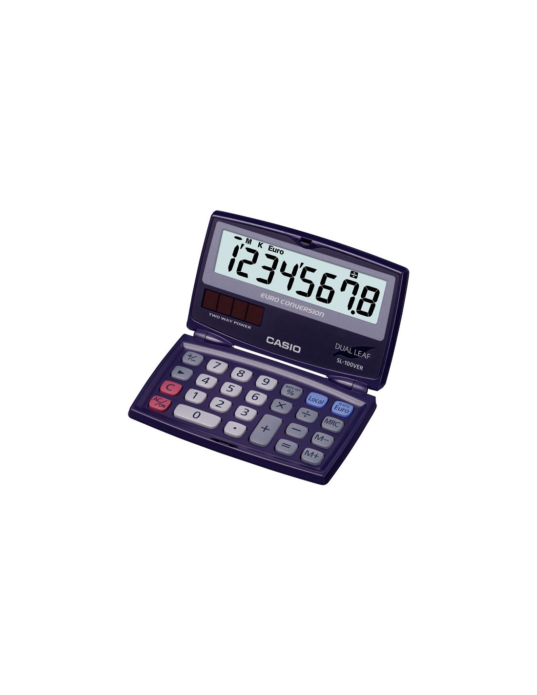 - Calculadora de bolsillo - Tapa tipo concha - Pantalla LCD grande de 8 dígitos - Alimentación combinada solar / pila - Calculación de porcentaje - Marcador de “coma” cada 3 dígitos - Conversión de moneda