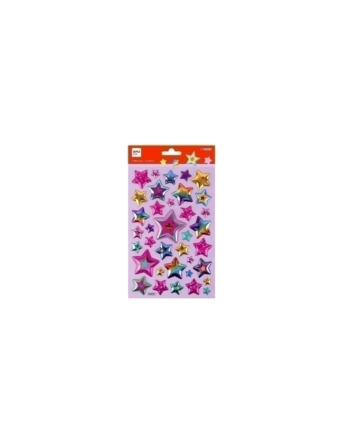 Bolsa de pegatinas con temática de Estrellas. Cada bolsa contiene 1 hoja con 37 pegatinas del espacio en diferentes tamaños y diseños. Pegatinas de adhesivo permanente, ideales para trabajos de scrapbooking, pegar en libros y carpetas, decorar álbumes, cartas, invitaciones y tarjetas, crear historias o simplemente personalizar objetos. Diseño orientado a niños pequeños. Horas de diversión para los más pequeños que, además, desarrollarán su psicomotricidad fina y estimularán su creatividad, ingenio y capacidad narrativa.