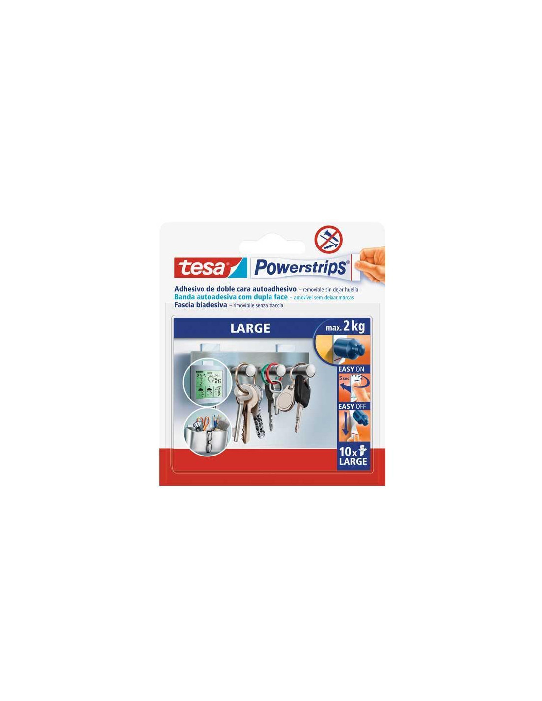 - Tiras adhesivas - Para fijación de objetos - Para superficies lisas y firmes - Para sujeción de hasta 2kg - Solución alternativa a los clavos y tornillos