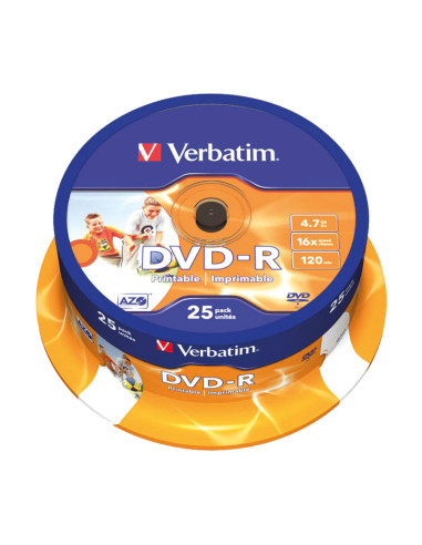 BOBINA 25 DVD-R VERBATIM 16X 47GB ADVANCED IMPRIMIBLE