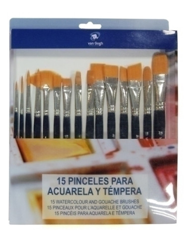 PINCEL VAN GOGH TORAY MANGO CORTO ACUARELA Y TEMPERA ESTUCHE DE 15