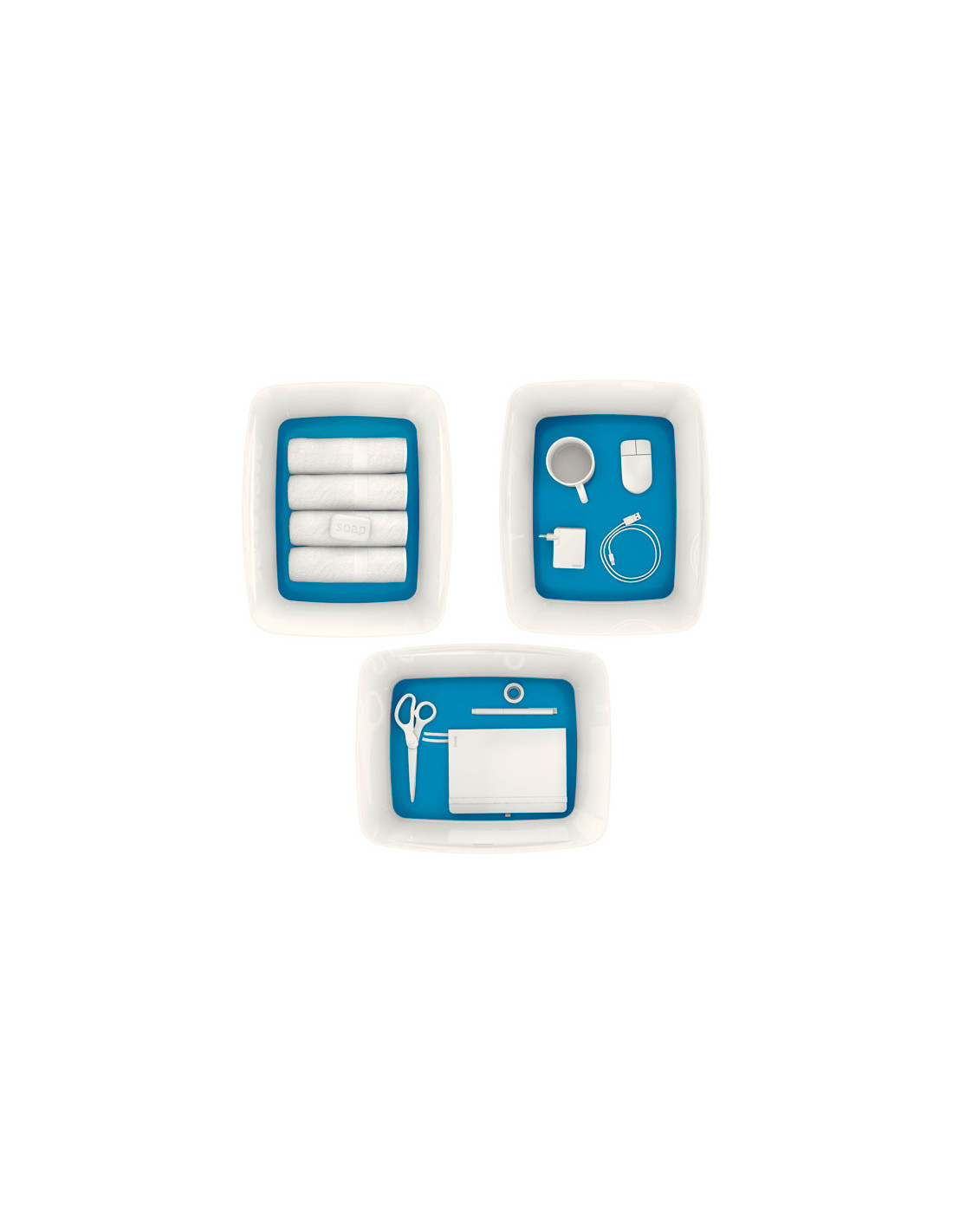 Caja de almacenaje modular bicolor de diseño moderno y acabado brillante resistente a los arañazos, para almacenar de forma rápida documentos, revistas, ropa, juguetes y otros accesorios. Ideal para una organización minimalista en casa o en la oficina. Fabricada con robusto material impermeable. Apto para uso alimentario. Sin BPA. Solución de almacenaje flexible para utilizar en casa, la oficina, el baño, la sala de reuniones, etc. Cabe en estanterías de tamaño estándar y debajo de la cama. Se pueden apilar hasta 4 cajas, fácil de transportar y reorganizar. Fácil de limpiar, alta resistencia al agua. Posibilidad de añadir compartimentos y bandejas de organización de la misma colección MyBox, que encajan perfectamente en la caja para separar el contenido. Dimensiones exteriores: 31,8x19,8x38,5cm, Internas: 24,3x19,8x31,8cm. Capacidad: 18 litros.