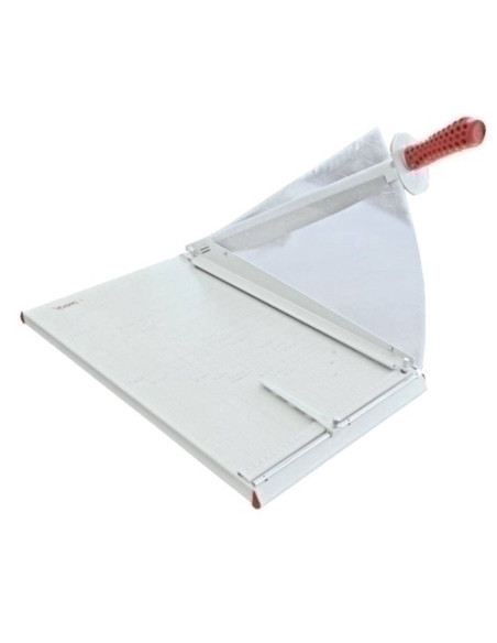 Dimensiones: 580 x 260 x 400 mm. Longitud de corte: 4200 mm. Capacidad de corte: 15 hojas (70 gr) ó 13 hojas (80 gr) Sistema pisón papel: Manual, diseño ergonómico. Escalas: Métrica Decimal (mm) Imperial (pulgadas) Serigrafías: DIN A6, A5, A4, B5, B5, B4. Peso neto / pza: 3,6 Kg. Doble protección para las manos mediante la pantalla transparente y la cazoleta del mango. Mango suave anti vibraciones. GARANTÍA 2 AÑOS.
