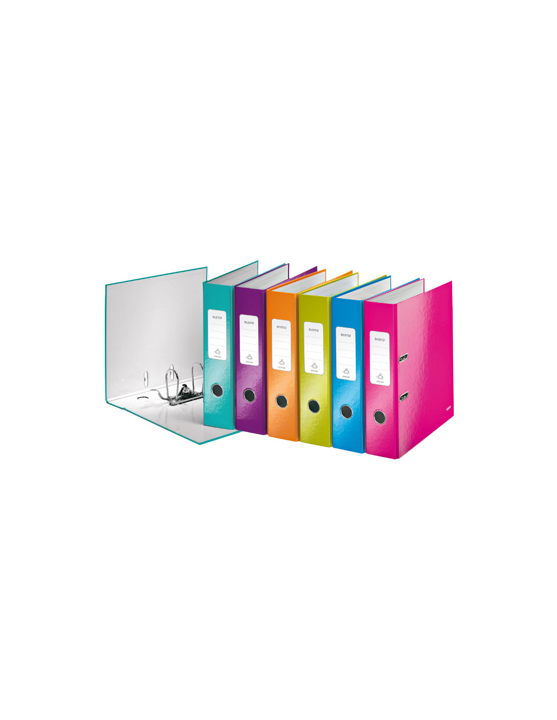 - Archivador de palanca - Llamativos colores - Doble efecto cromático - Superficie plastificada - Con apertura de 180º - Formato A4 - Lomo 80 mm.