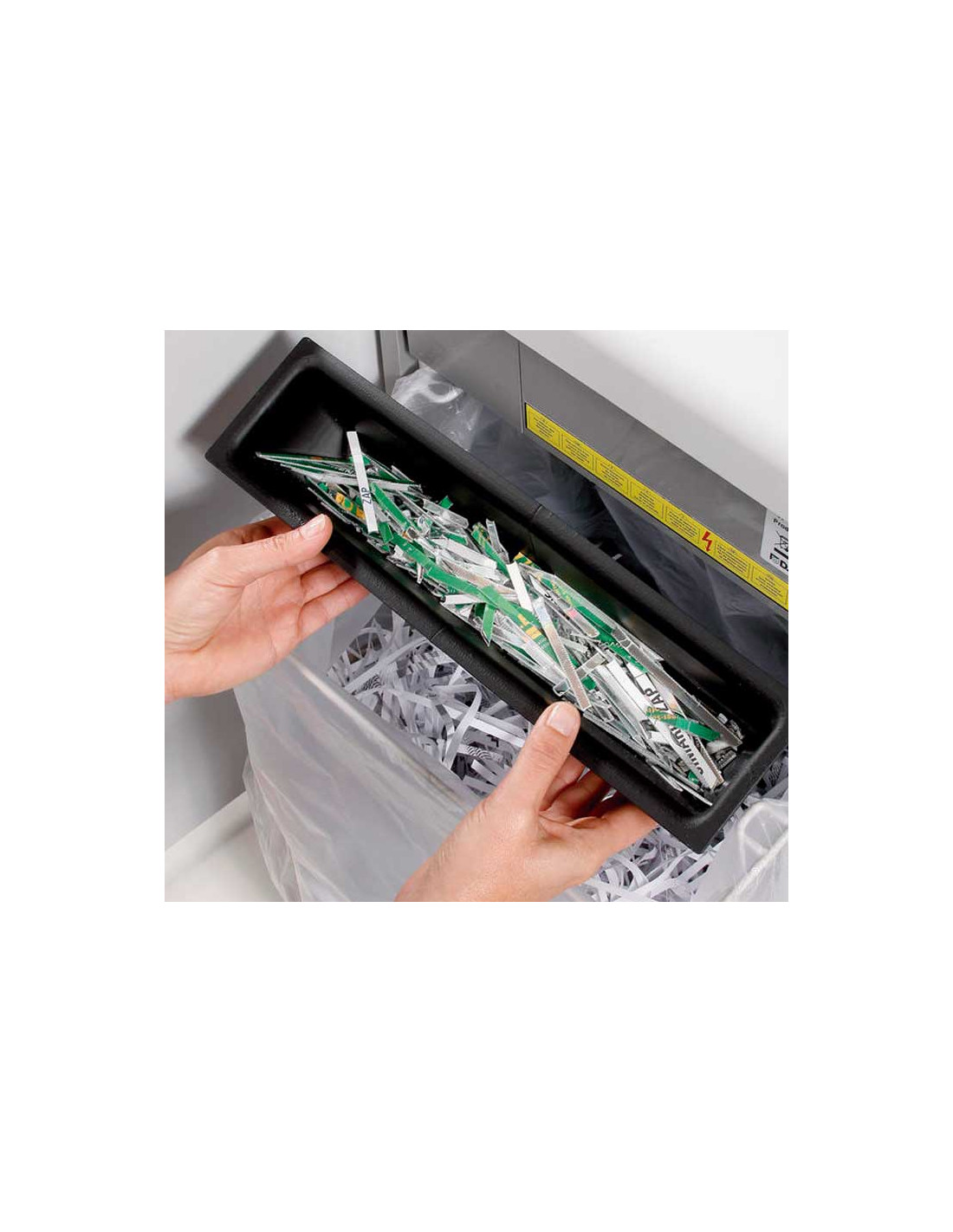 - Destructora de documentos departamental - Ancho de entrada 260 mm - Potencia 650 W - Capacidad 60 litros - Capacidad de corte 22h de 80gr - Corte en tiras - Función de retroceso automática - Parada del motor automática al llenarse la bolsa recolectora o puerta abierta - Rodillos de corte de acero de alta calidad - Ranura y depósito recolector de CD independiente - Funcionamiento sumamente silencioso para un ambiente de trabajo más tranquilo - Ruedas orientables para mayor comodidad - German Engineering by Dahle