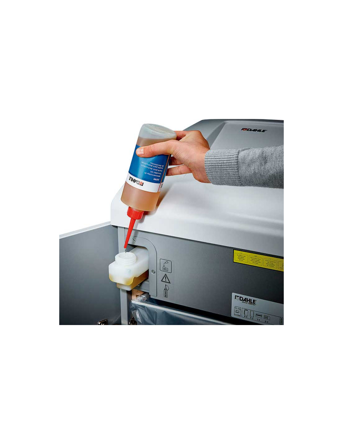 - Destructora de documentos departamental - Sistema de filtro de partículas único DAHLE CleanTEC® - Revolucionarios rodillos de corte MHP - Depósito de aceite integrado para un lubricado automático controlado de los rodillos de corte - Ancho de entrada 260 mm - Potencia 650 W - Capacidad 60 litros - Corte en partículas - Capacidad de corte 13h de 80gr - Función de retroceso automática - Parada del motor automática al llenarse la bolsa recolectora o puerta abierta - Rodillos de corte de acero de alta calidad - Funcionamiento sumamente silencioso para un ambiente de trabajo más tranquilo - Ruedas orientables para mayor comodidad - German Engineering by Dahle