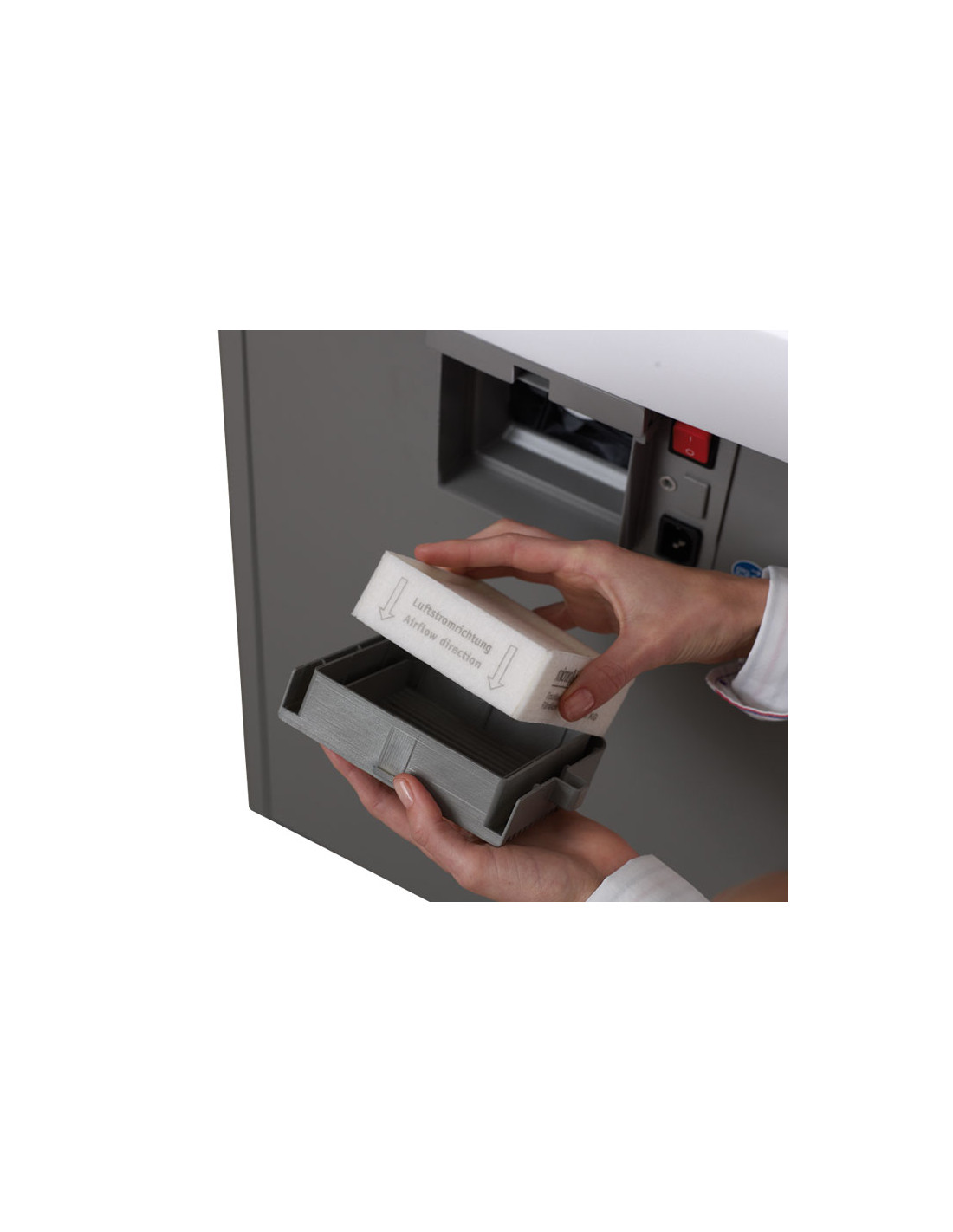 Lo importante es ante todo una destrucción rápida y eficiente de papel y soportes digitales. Sus documentos, archivos y soportes de datos suelen contener información sensible. Las destructoras de documentos Dahle le ofrecen la seguridad de que ninguno de los datos caerá en manos indebidas, gracias a la fiable y probada técnica y su ingenioso y sencillo manejo. La amplia gama de productos ofrece la destructora de documentos adecuada para cualquier necesidad y cualquier circunstancia en la oficina. Los amortiguadores silenciosos ofrecen una destrucción silenciosa (por debajo de los 55 decibelios homologados). Las destructoras de documentos DAHLE CleanTEC® están equipadas con un innovador sistema para la reducción de las partículas de polvo: Las partículas de polvo fino se atrapan directamente en los rodillos de corte y son conducidas mediante un sistema de aspiración a un filtro en la parte trasera del equipo.