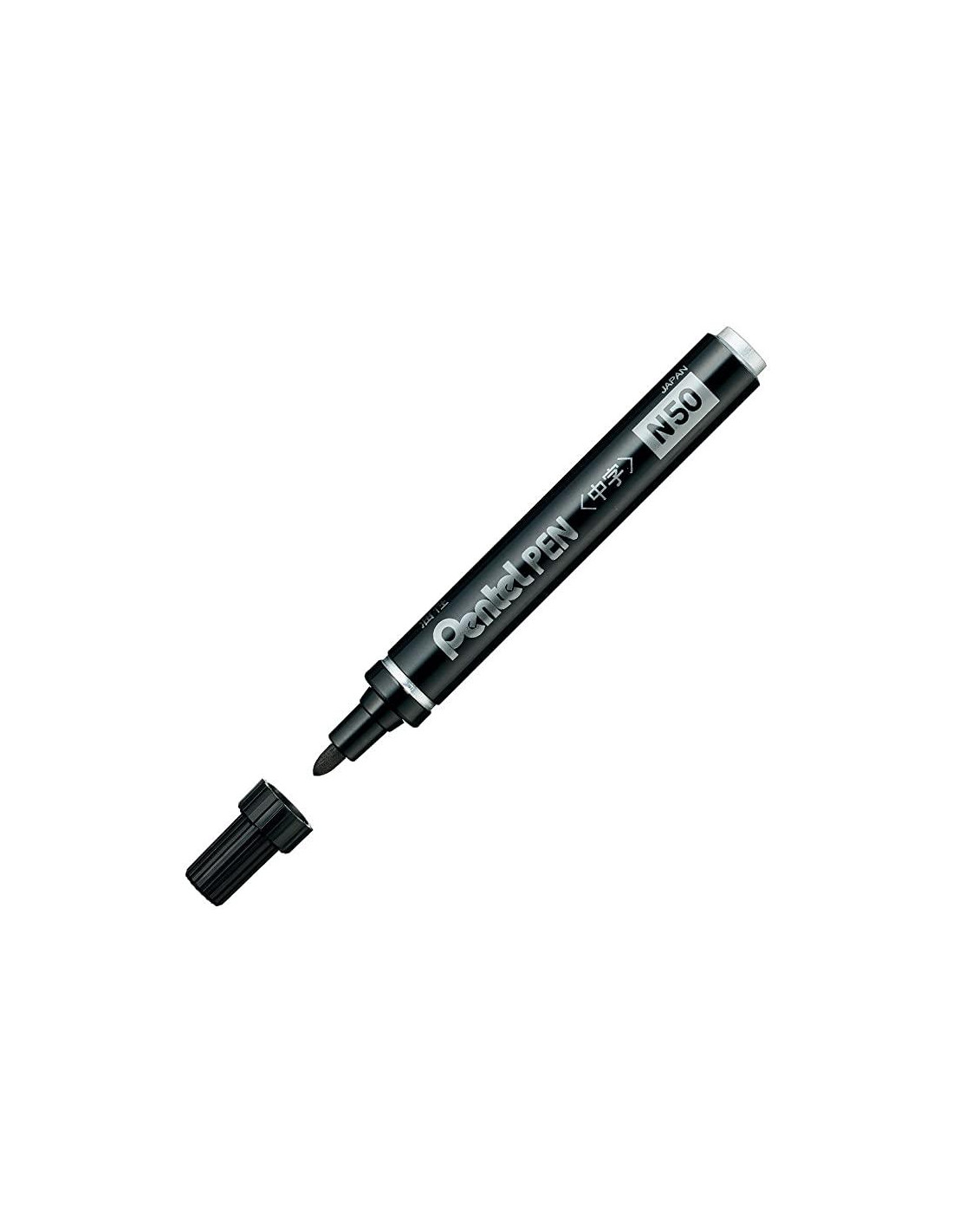 PENTEL PEN N50-AE MARCADOR PERMANENTE CUERPO ALUMINIO NEGRO Y PUNTA MEDIA CONICA -12U-