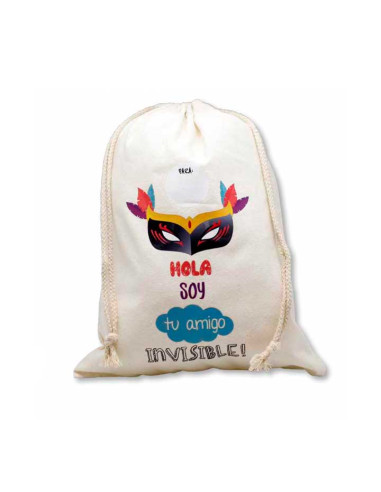 - Saco para regalos - Ilustraciones Amigo Invisible - 100 % alogodón - Espacio personalizable - Medida: 25x35cm