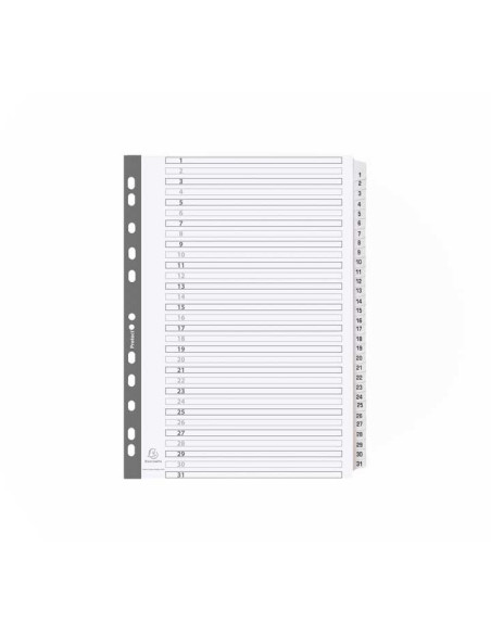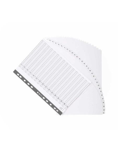 - Separadores - Cartulina de 160gr - Pestañas plastificadas - Página de índice - Formato A4 - 31 posiciones