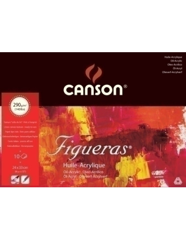 Canson® Figueras® es un papel sin estucar con una textura similar al grano de lienzo, libre de ácido, sin blanqueadores ópticos, ligero y con excelente longevidad, ofrece una barrera de alto rendimiento para absorber el óleo, los ligantes y el agua, garantizando una gran resistencia de la capa de pintura superficial. Perfecto para óleo, óleo acrílico y pastel graso.