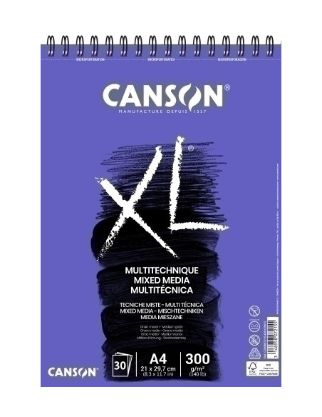 BLOC DE DIBUJO CANSON XL MIX MEDIA TEXTURED CON ESPIRAL GRANO MEDIO A4 300g 30h