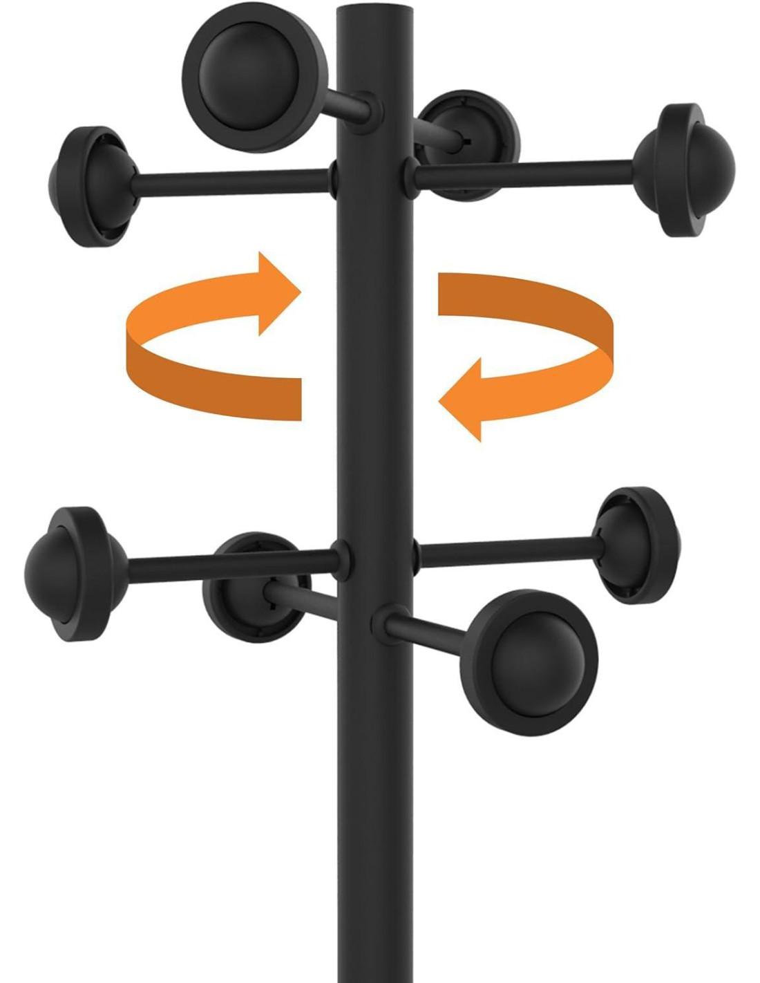 - Perchero de pie - Fabricado en acero - Cabezal giratorio - Con 8 colgadores - Paragüero y bandeja antigoteo integrado - Capacidad de hasta 9 paraguas - Base estable