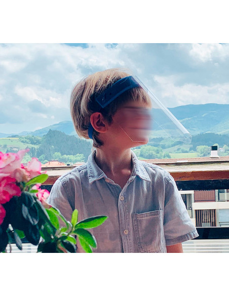 - Caja de 5 unidades - Pantalla de protección facial para niños - Fáciles de usar y cómodas - Foam para colocación en la frente - Ajustable con goma ancha - Lavable y reutilizable - Fabricada en PVC Cristal de 200 micras - Cumple con la normativa REACH. - Medidas: 25 cm. (ancho) x 20 cm. (alto).