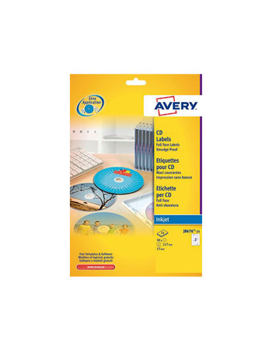 - Ideal para organizar tu música, fotos y vídeos en CD - Un sistema fácil y rápido para personalizar tus CD - Dos aletas sin cola te ayudan a centrar perfectamente la etiqueta sobre el CD - Ahorra tiempo utilizando el software y los modelos gratuitos para la impresión - Crea e imprime tus etiquetas con el software gratuito: www.avery.es/plantillas-software