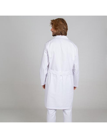 Bata básica unisex de manga larga. Cierre con botones de pastilla y cuello con solapa. Modelo holgado, con costadillos en la espalda y cinturón trasero. Tiene un bolsillo en el pecho izquierdo y dos bolsillos de parche en la cintura. Fabricado en un 65% sarga y 35% PES CO - 200gr/m2. Es ideal para uniformes de enfermería, doctores y demás profesionales en hospitales, clínicas y centros médicos, farmacia, laboratorio, veterinario, hostelería y cocina, limpieza, peluquería, estética, spa o comercio. * Las medidas son orientativas y pueden variar en unos pocos cm. Las medidas de pecho, cintura y cadera indicadas en la imagen corresponden a los cm. de la prenda sobre una superficie plana, para determinar el contorno aproximado se debería multiplicar la medida x2.