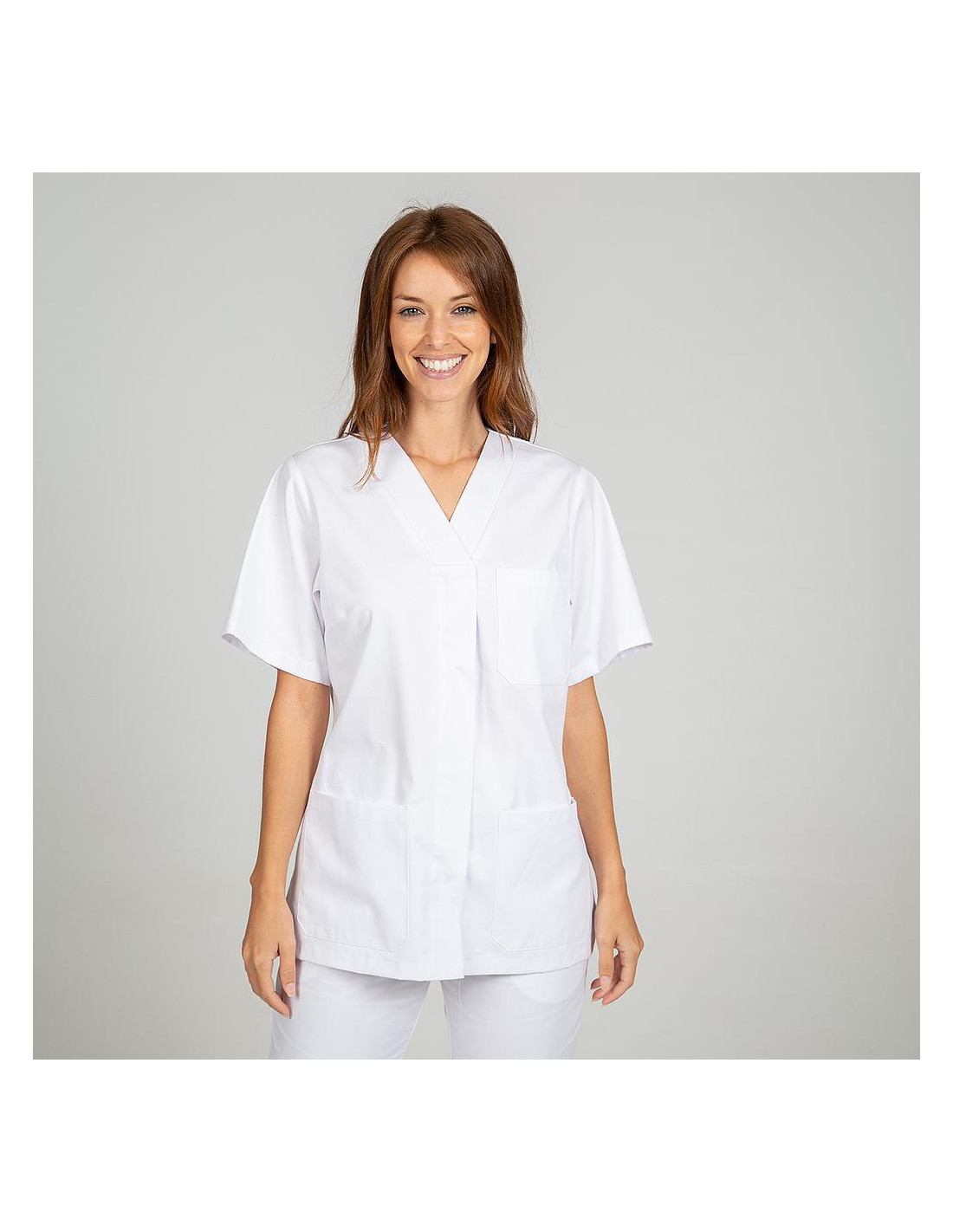 - Blusa de mujer tipo carcasa de manga corta - Moderno cuello de pico - Dos bolsillos delanteros y otro en el pecho izquierdo - Cierre de botones de presión ocultos - Corte semi ajustado - Fabricado en un 65% sarga y 35% PES CO - 200gr/m2 - Es ideal para uniformes de ámbitos sanitarios y estética - ¿Quieres personalizar esta prenda con tu marca? ¡Consúltanos!