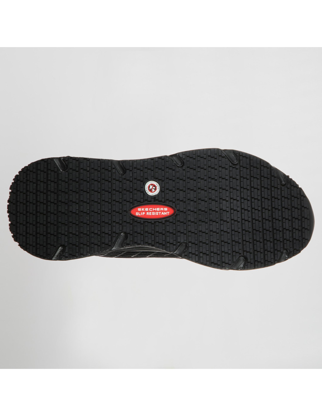 Calzado laboral de mujer que combina seguridad y comodidad. Esta zapatilla de trabajo antideslizante presenta un frontal con cordones en un tejido de malla duradero y parte superior sintética con diseño Max Cushioning Elite ™, plantilla acolchada extraíble Memory Foam y entresuela flexible y liviana. Sutil detalle sintético tono sobre tono en los paneles laterales. Tejido de malla con estampado háptico y parte superior sintética ligera. Ideal para estar de pie y caminar durante largos periodos de tiempo. Diseño Relaxed Fit® para un ajuste amplio y cómodo en la punta y la parte delantera del pie. Suela antideslizante nivel "SRC" testada en baldosa y acero. Resistente a hidrocarburos. Certificado EN ISO 20347:2012 y categoría OB FO SRC.