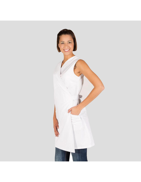 - Bata de mujer sin mangas - Diseño cruzado - Modelo semientallado con pinzas en el pecho - Con cinturón trasero de cintas - Bolsillo en el pecho derecho y dos bolsillos de parche delantera - Fabricada en un 65% sarga y 35% PES CO - 200gr/m2 - Es ideal para uniformes de ámbitos sanitario, limpieza, almacén, alimentación o comercio - ¿Quieres personalizar esta prenda con tu marca? ¡Consúltanos!