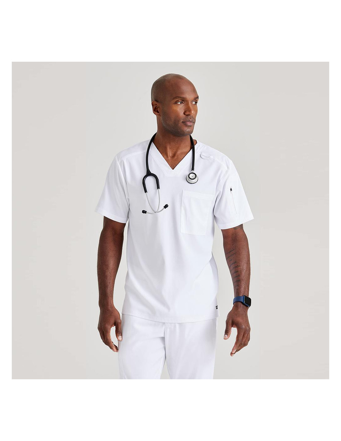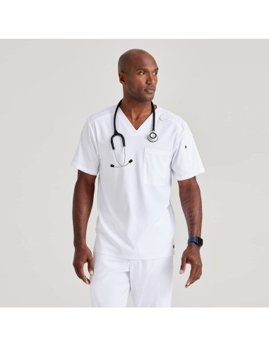 Casaca básica de manga corta de Skechers by Barco. Cuello en V y con dos bolsillos, uno en el pecho y otro con cremallera en la manga. Suave tejido elástico que absorbe la humedad y acabado antimicrobiano que reduce el moho y el mal olor, además de ser antisueciedad. Fabricada en 74% poliéster, 23% rayón y 3% spandex twill. Recomendamos lavar antes de usar. Lavar a máquina en caliente con colores similares. Utilizar lejía sin cloro si es necesario. Secar en secadora a baja temperatura. Planchar a baja temperatura. Ideal para uniformes de enfermería, médicos, dentistas, fisioterapeutas y profesionales de la salud en hospitales, clínicas, laboratorios, farmacias, veterinarios, así como en entornos de limpieza, alimentación y comercio. * Las medidas son orientativas y pueden variar en unos pocos cm. Las medidas de pecho, cintura y cadera indicadas en la imagen corresponden a los cm. de la prenda sobre una superficie plana, para determinar el contorno aproximado se debería multiplicar la medida x2.