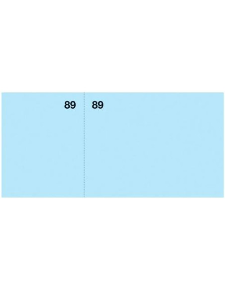 Vales de caja del 0 al 99, tamaño 105 x 50 mm. Surtido de 5 colores: amarillo, naranja, rosa, verde y azul. Cada pack contiene 2 talonarios de cada color. Vale con dos partes idénticas (una para entregar al cliente y la otra para el vendedor). Papel litos con matriz para una fácil separación.
